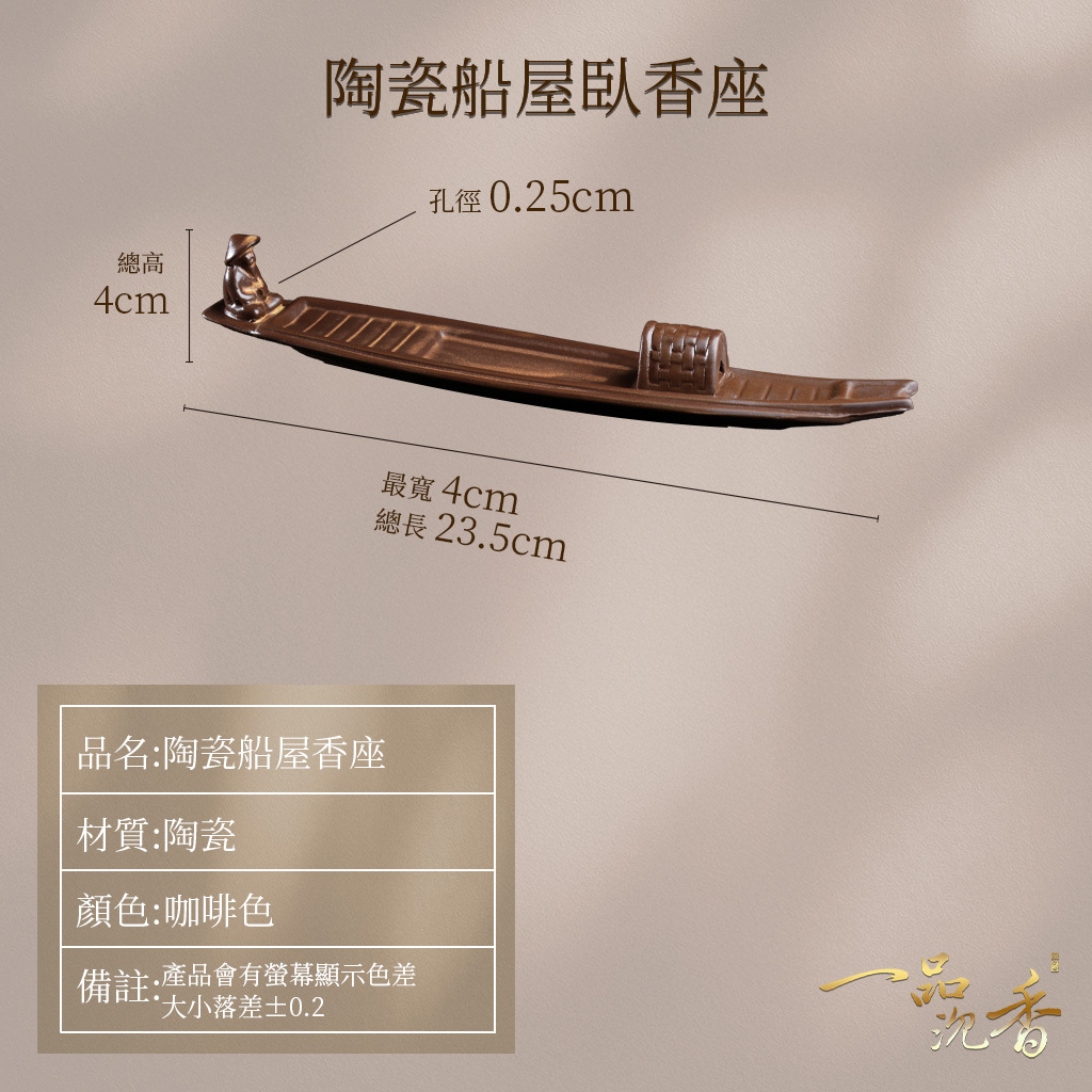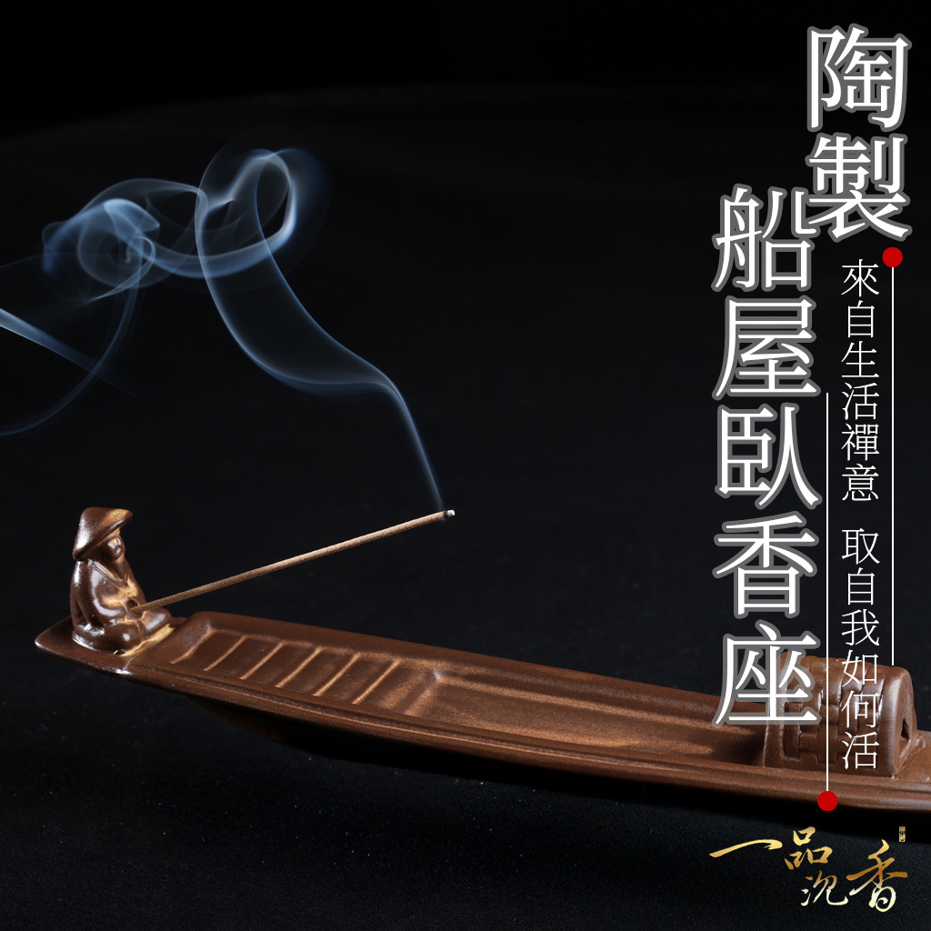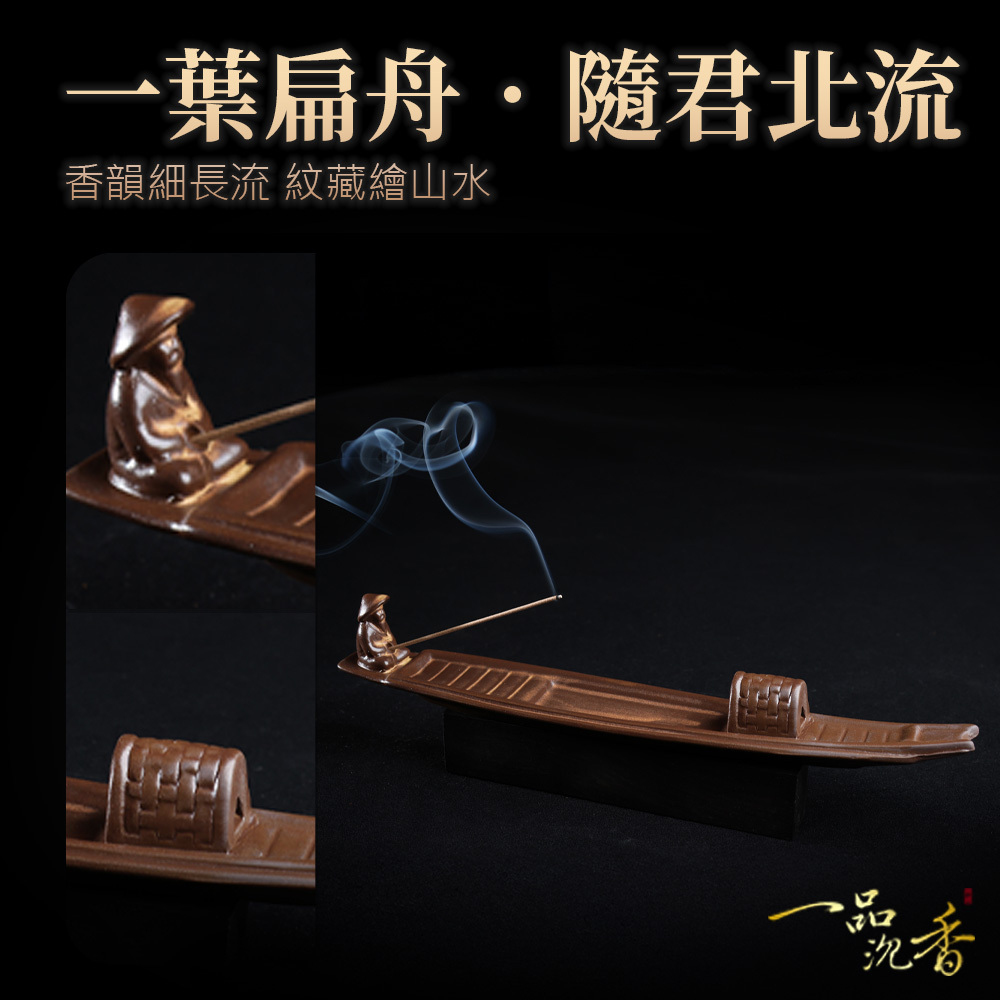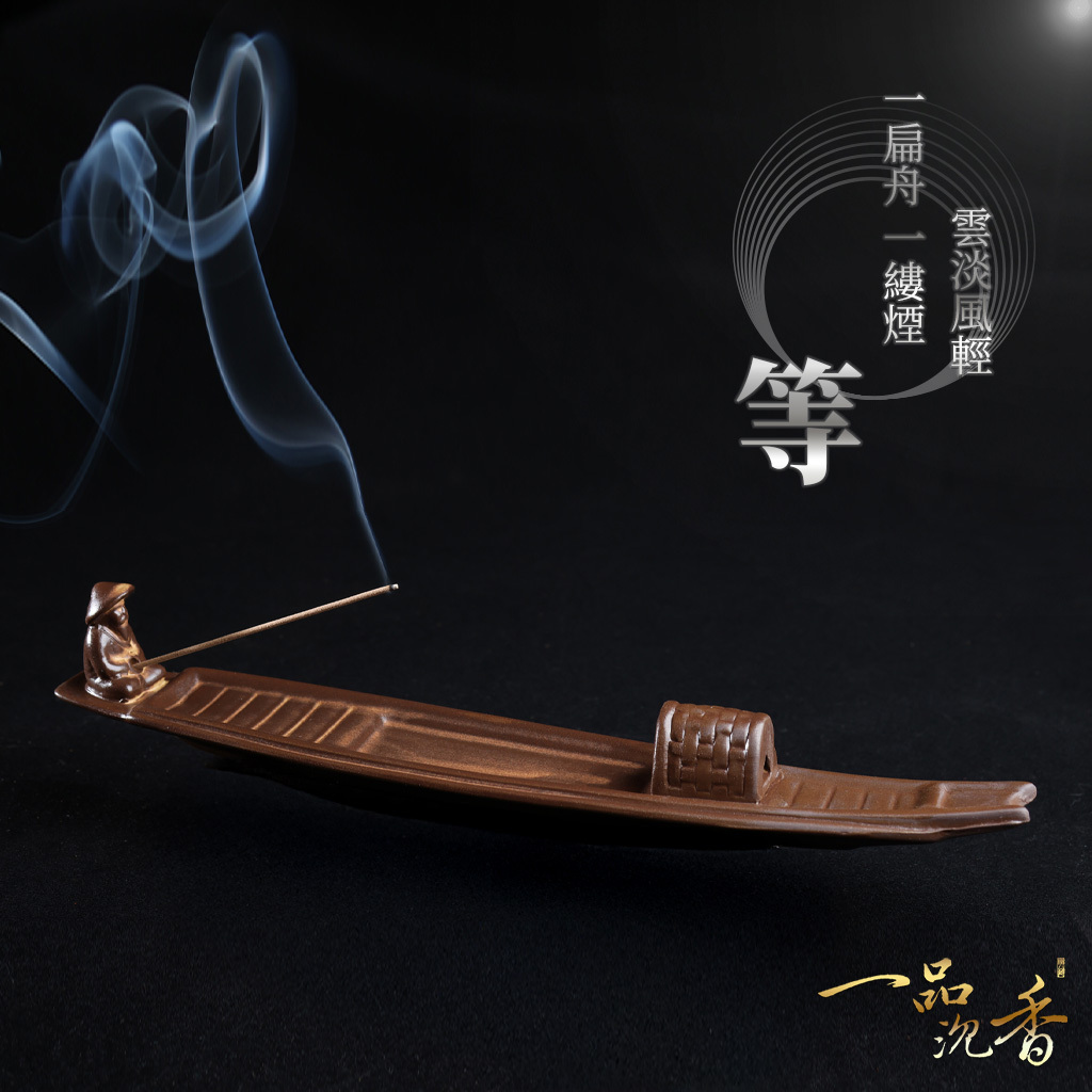 陶製船屋臥香座造型趣味雅致,質地細膩溫潤,可安放臥香平穩燃燒,香煙緩緩飄散,如小船輕蕩水面,兼具實用與裝飾性,為品香空間增添靜謐與雅趣。