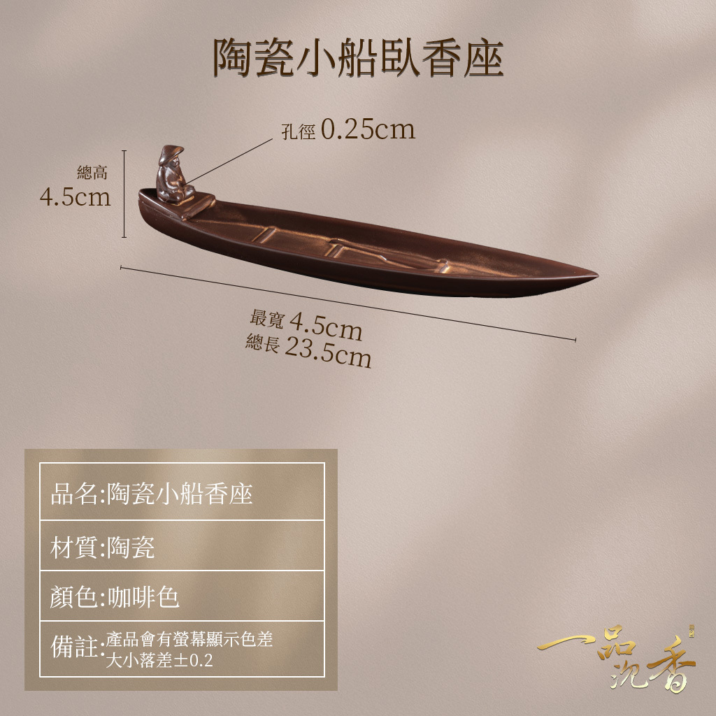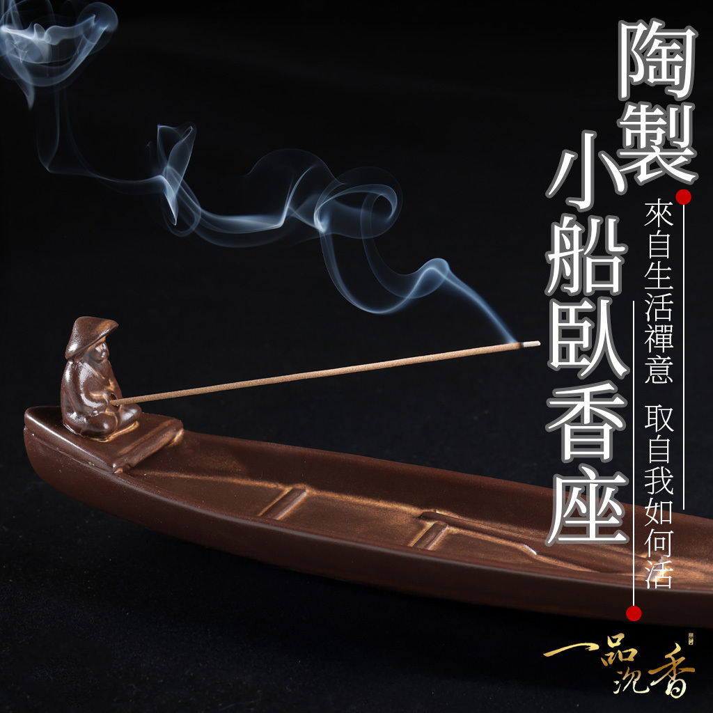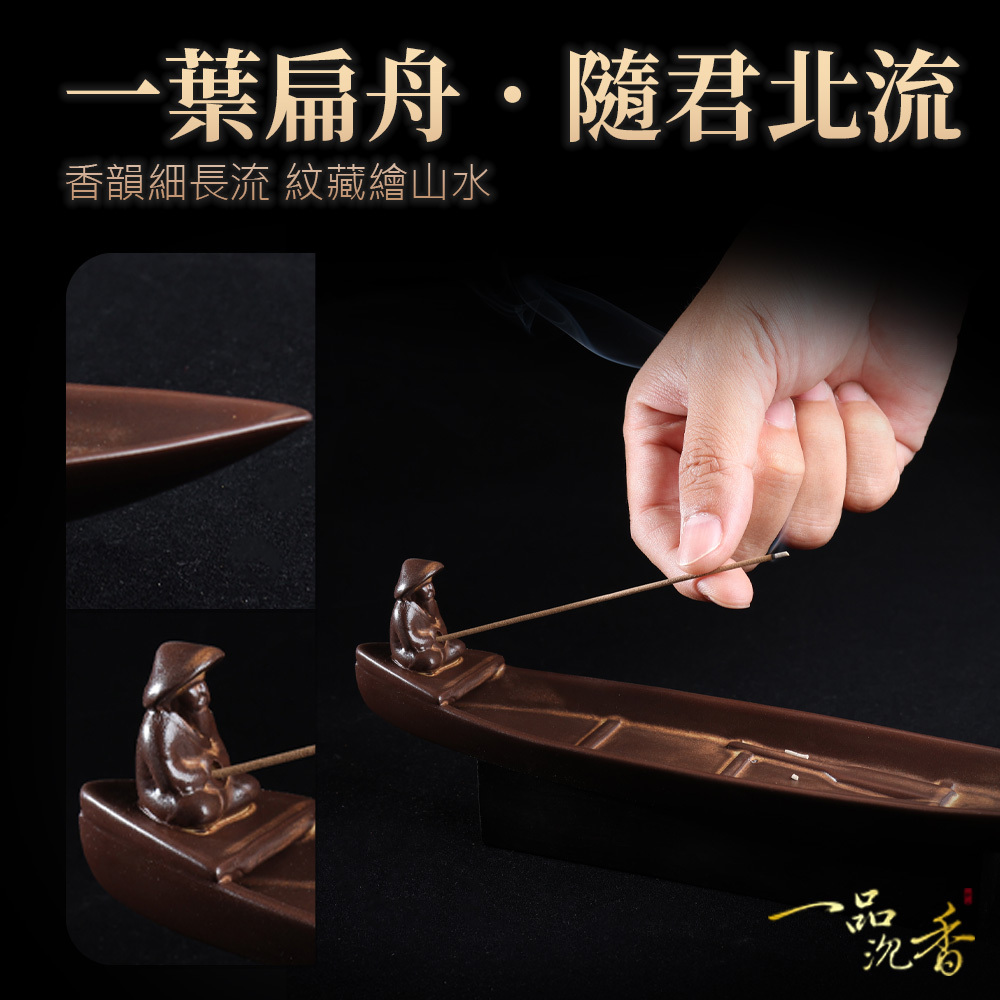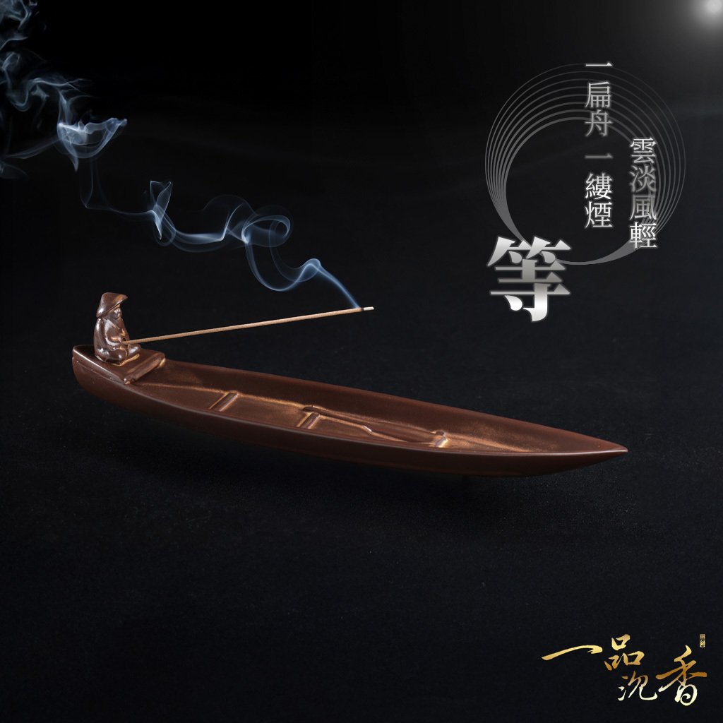 陶製小船臥香座造型趣味雅致,質地細膩溫潤,可安放臥香平穩燃燒,香煙緩緩飄散,如小船輕蕩水面,兼具實用與裝飾性,為品香空間增添靜謐與雅趣。