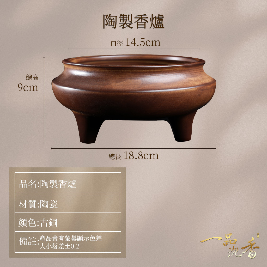 陶製大香爐採用優質陶土精製,造型大氣典雅,容量充足,可穩固承放大香燃燒,導熱均勻,香氣悠然散發,兼具實用性與裝飾性,為品香空間增添沉穩高雅的氛圍。