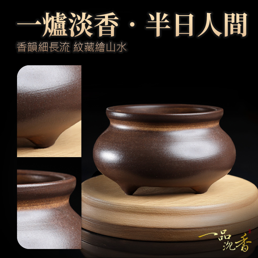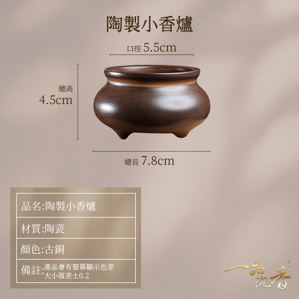 陶製小盤香爐以細膩陶質打造,造型簡約雅致,能平穩承放小盤香燃燒,導熱均勻,香氣自然舒緩散發,兼具實用性與裝飾美感,為品香空間增添清雅靜謐氛圍。