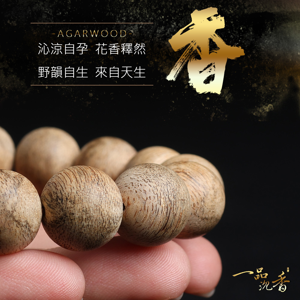 專注於誦念或冥想 此款為天然沉木,未經染色或上漆,請避免接觸泳池、水源、沐浴及大量出汗;長期不佩戴時,建議密封收納於陰涼處。