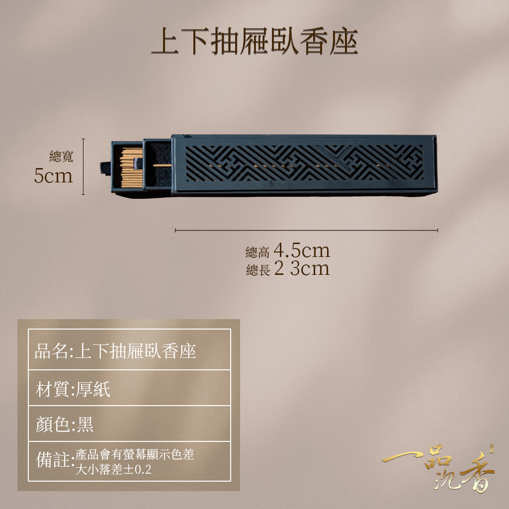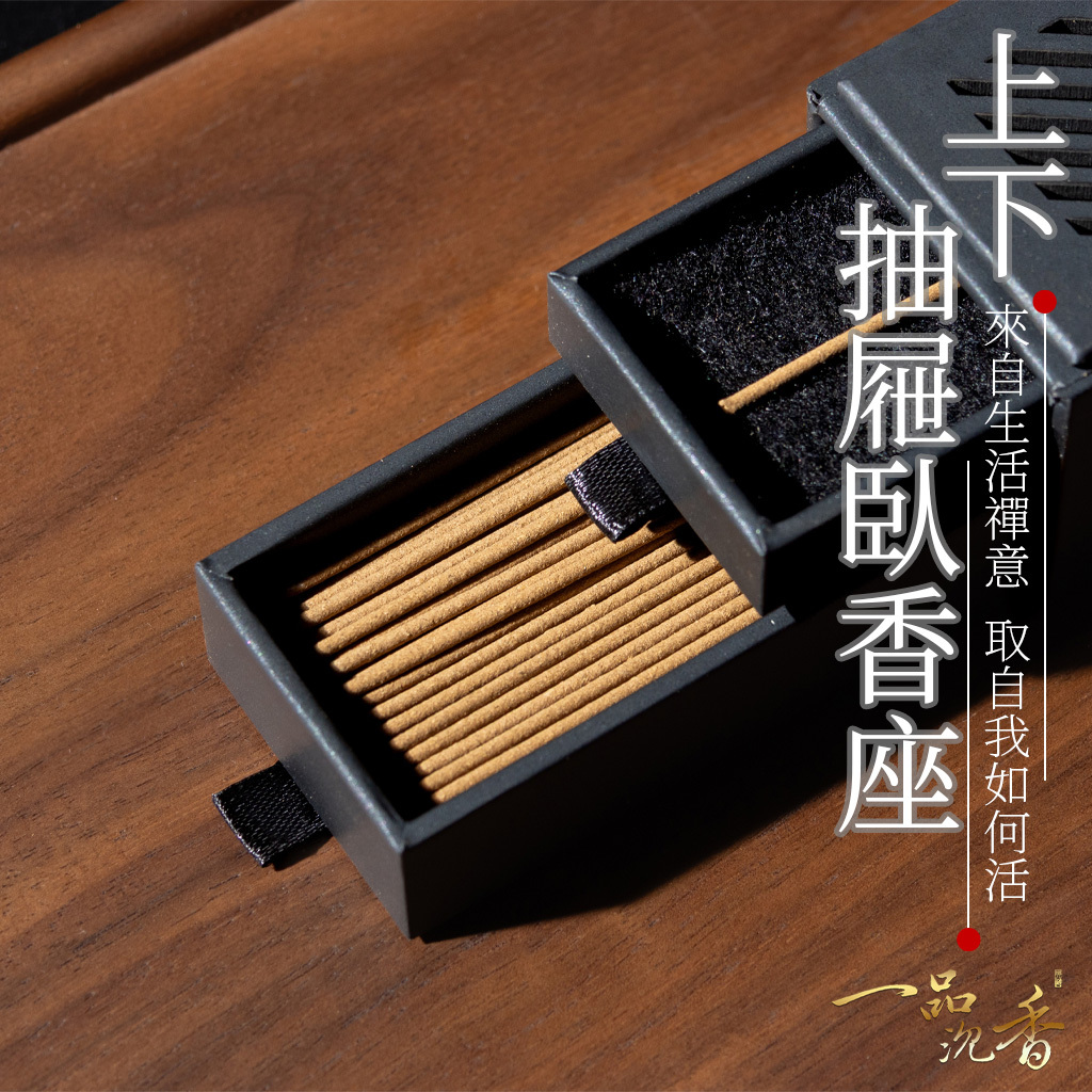 上下抽屜臥香座是一款兼具實用與美觀的香具,上層可放置臥香燃燒,下層抽屜則用於收納香品或收集香灰,設計便利整潔,使用簡單,能保持環境清爽並提升焚香雅趣。