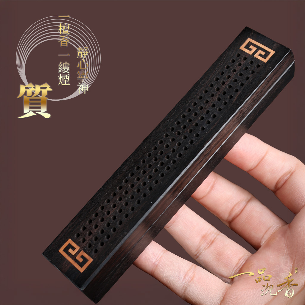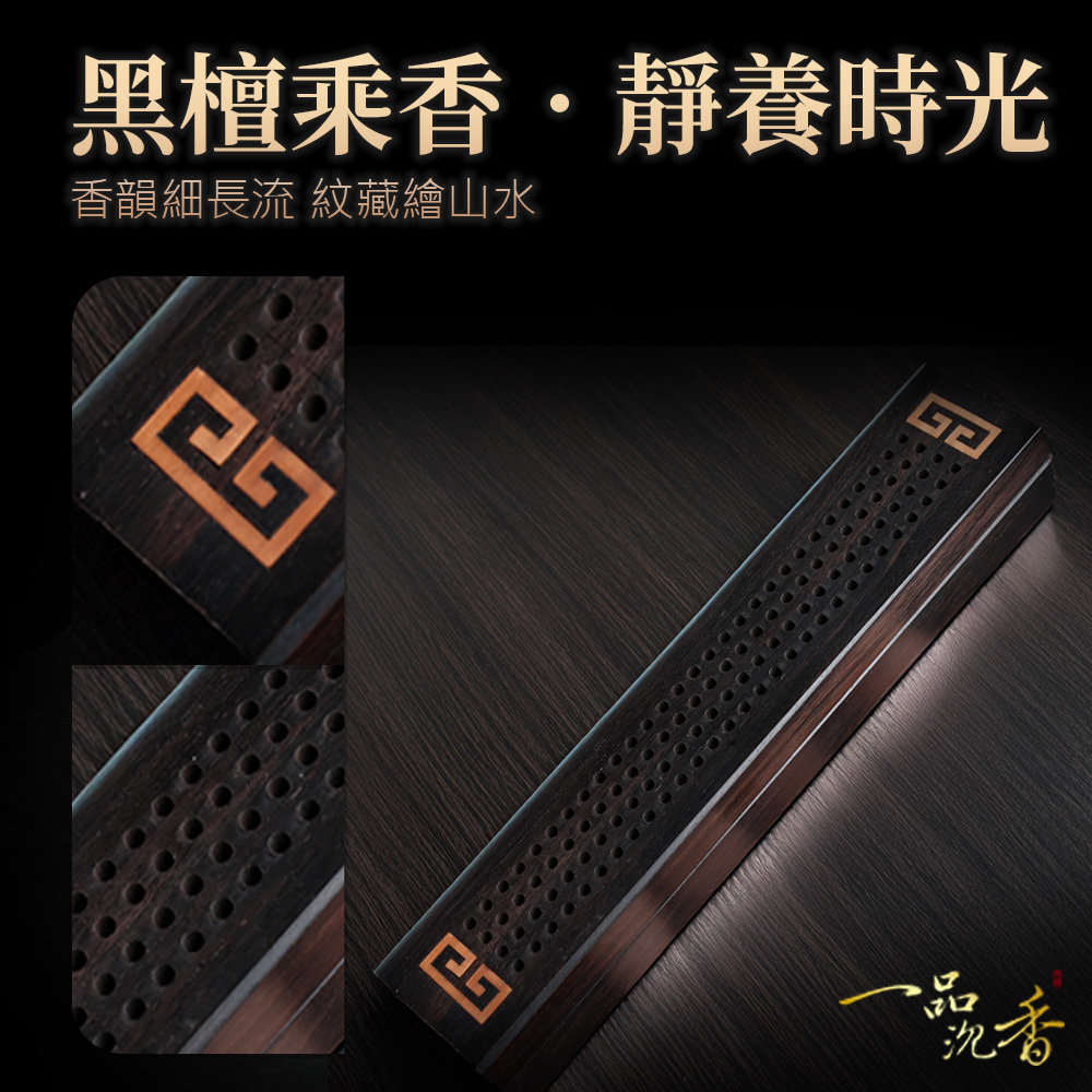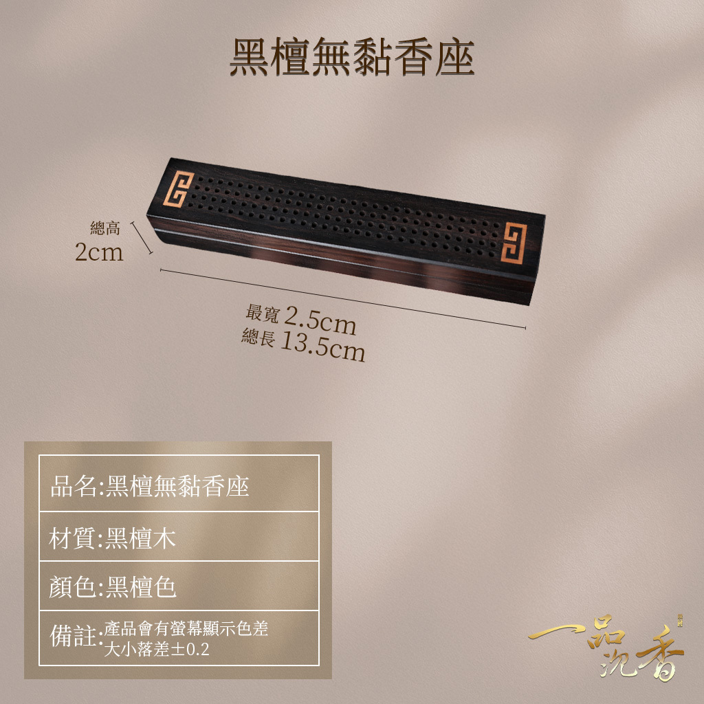 黑檀木無黏香座以珍貴黑檀木製成,木質堅實細密,色澤深沉光潤,專為無黏香設計,能穩固承放香品,燃時香氣清雅悠長,展現低調奢華與靜謐高雅之美。
