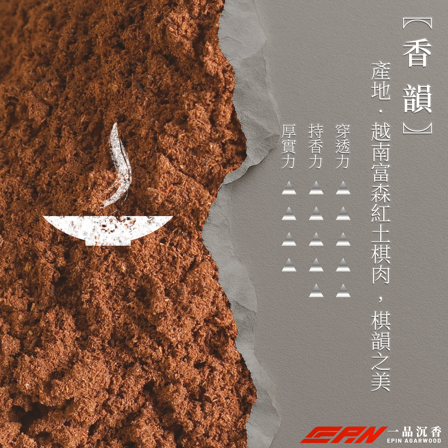 富森棋肉的香氣,宛如樹海寧靜且深遠,隱約透出天然樹脂的細膩甜韻。