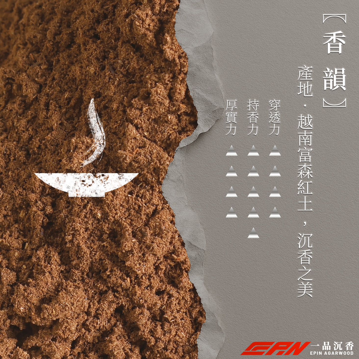 富森紅土的香氣,宛如樹海寧靜且深遠,隱約透出天然樹脂的細膩甜韻。