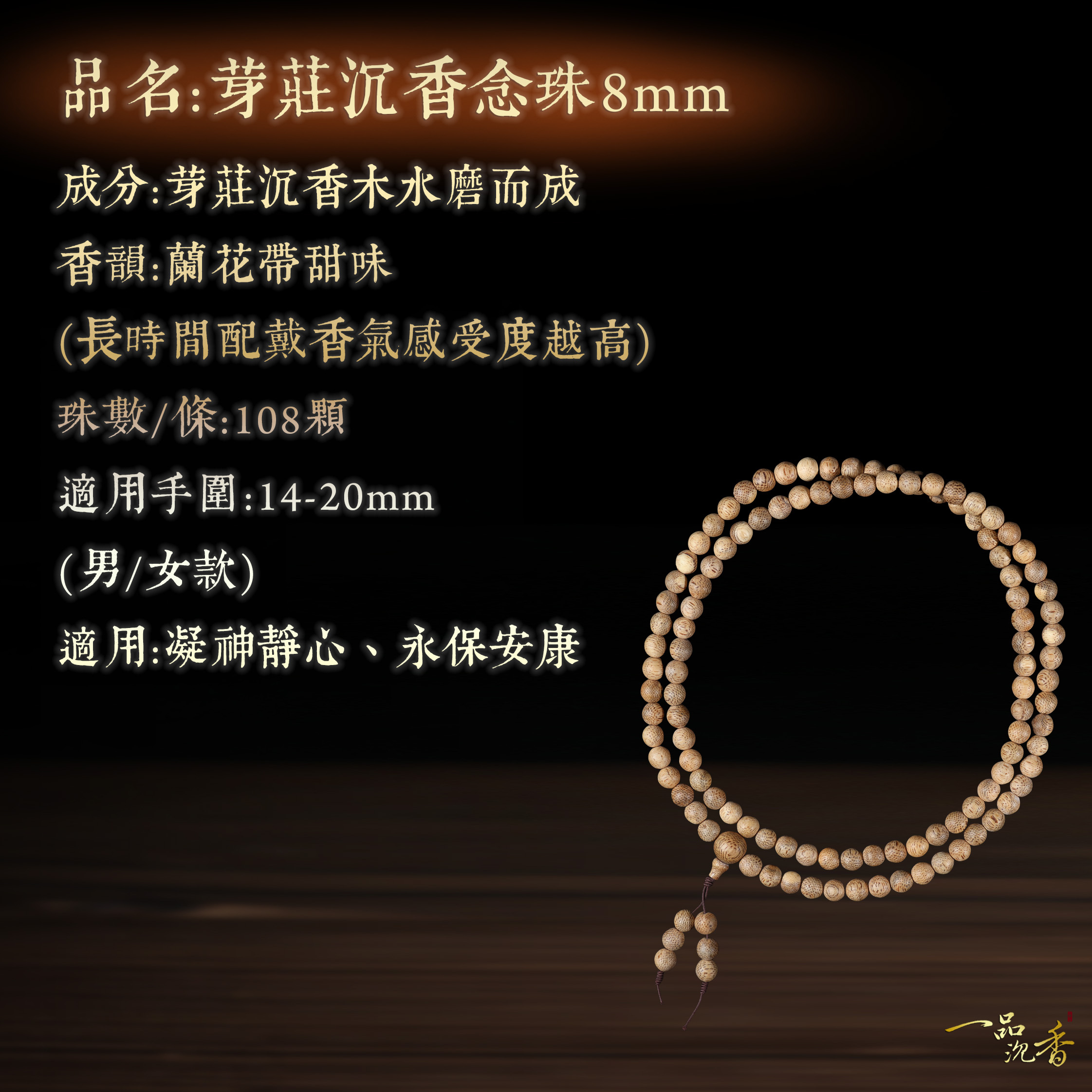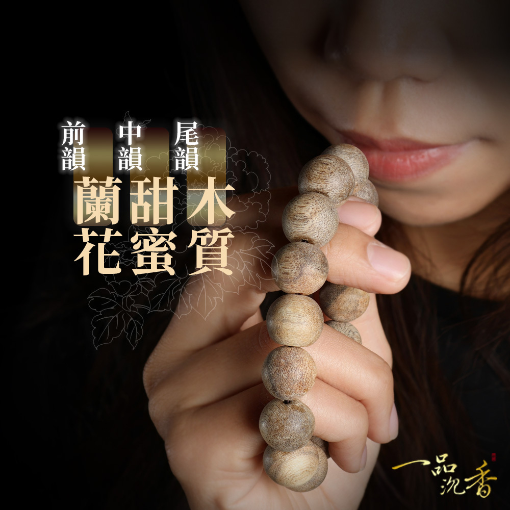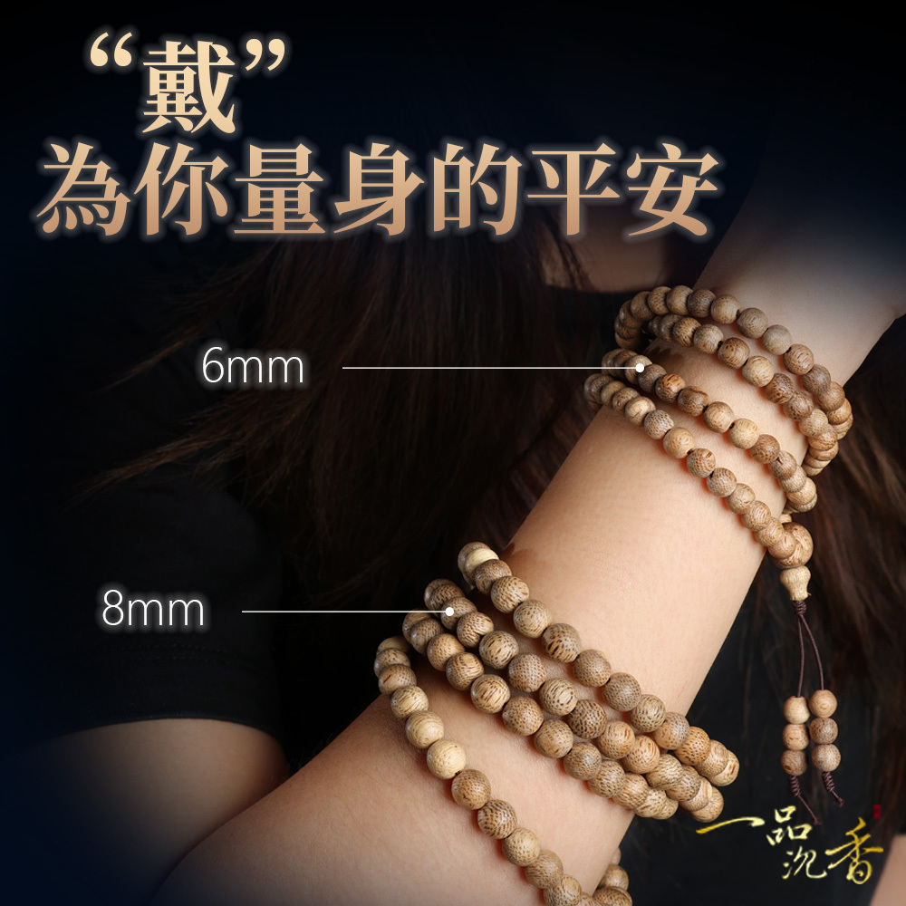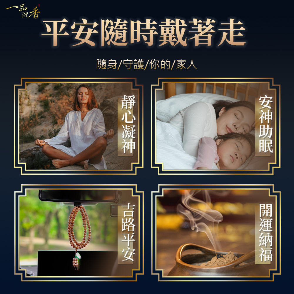 專注於誦念或冥想 此款為天然沉木,未經染色或上漆,請避免接觸泳池、水源、沐浴及大量出汗;長期不佩戴時,建議密封收納於陰涼處。
