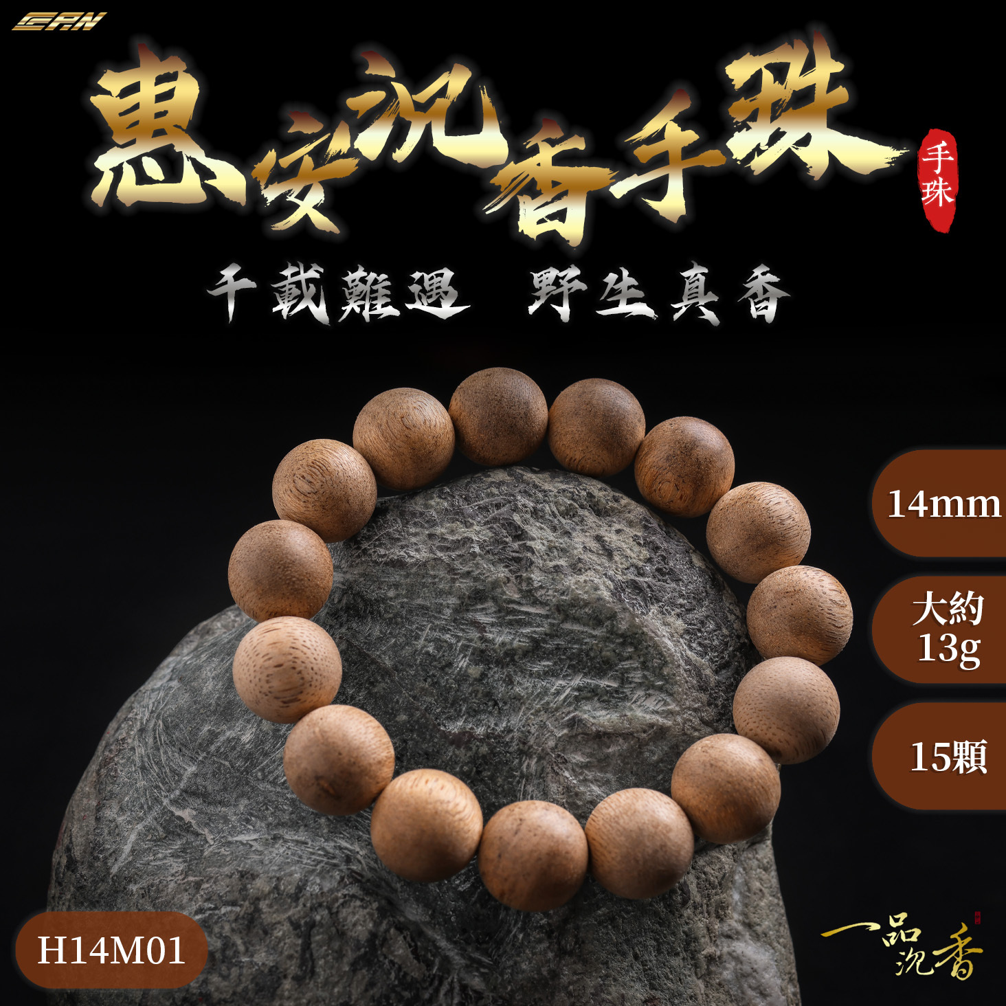 【一品沉香】惠安沉香14mm手珠1條男女款 推薦沉香珠 野生沉香 念佛 供佛 保平安 冥想 惠安沉香 野生沉香珠 沉珠