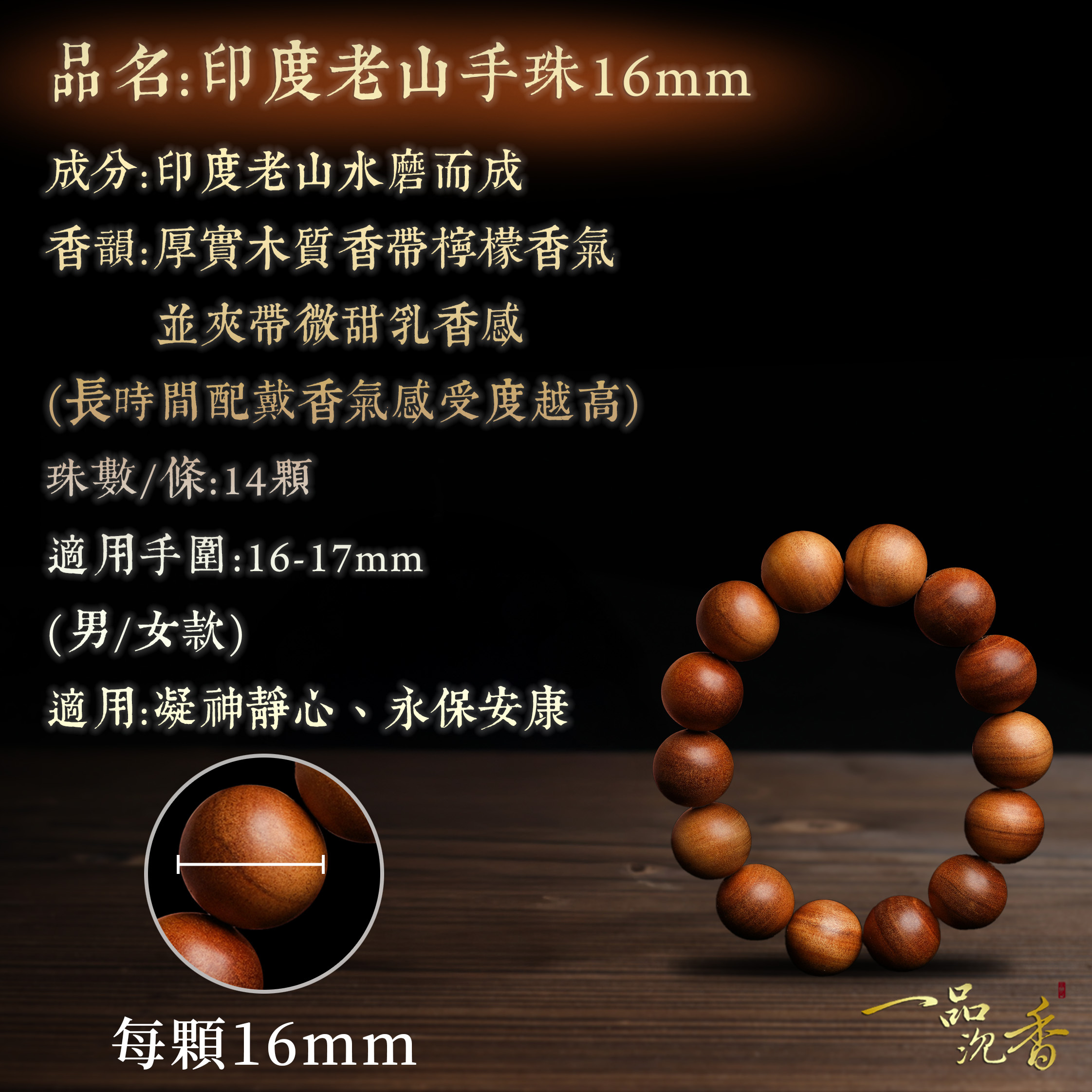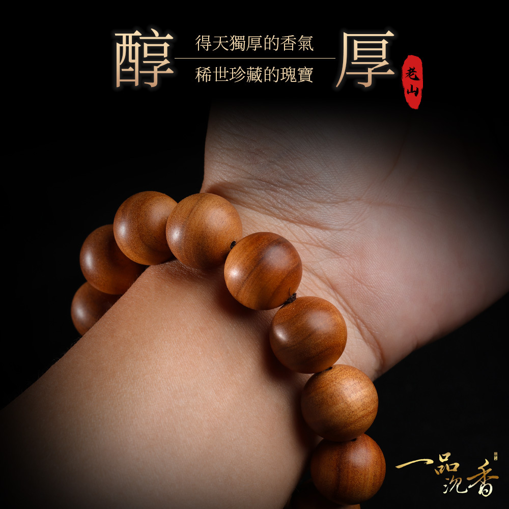 專注於誦念或冥想 此款為天然沉木,未經染色或上漆,請避免接觸泳池、水源、沐浴及大量出汗;長期不佩戴時,建議密封收納於陰涼處。