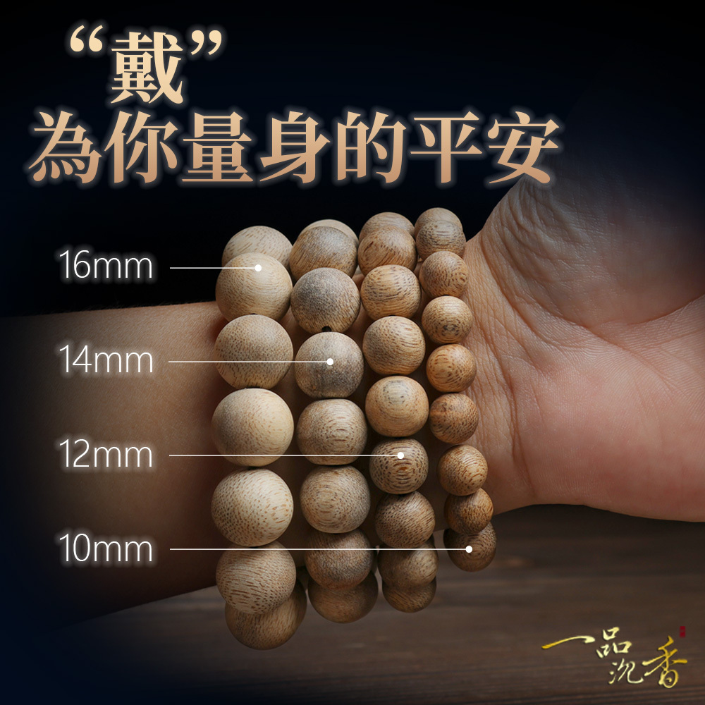 專注於誦念或冥想 此款為天然沉木,未經染色或上漆,請避免接觸泳池、水源、沐浴及大量出汗;長期不佩戴時,建議密封收納於陰涼處。