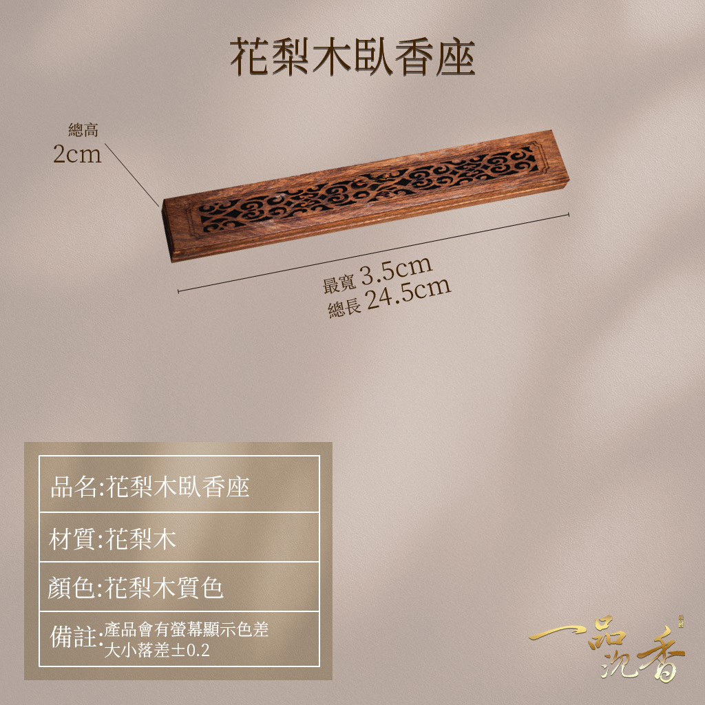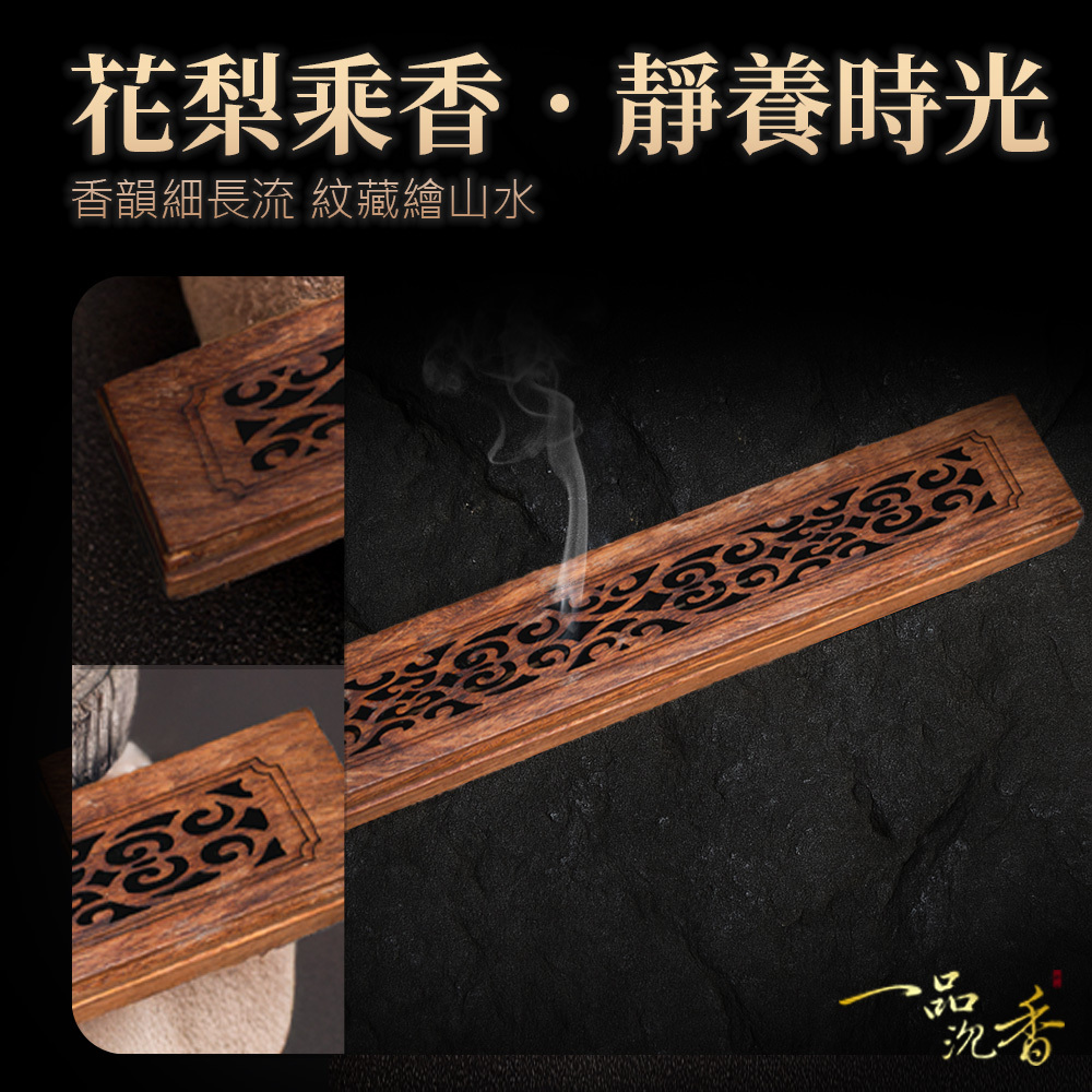 花梨木臥香座以天然花梨木製作,木質細膩溫潤,色澤沉穩雅麗,能平穩承放臥香,燃時香煙清雅縈繞,兼具實用與美感,為品香增添古樸高雅的氛圍。